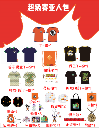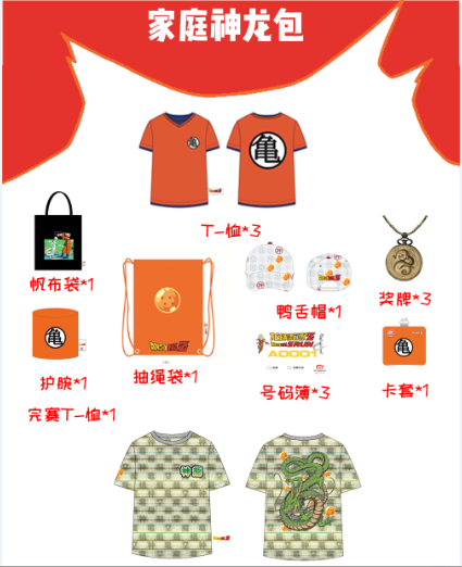 賽事T恤1件,號碼簿1個,抽繩袋1個,護腕1個,貼紙1張,帽子2頂,卡套1個,徽章3個,冰箱貼3個,鑰匙扣1個,止汗帶1個,帆布袋1個,仙豆袋1個,雨傘1把,完賽獎牌1塊,完賽紀念T恤4件(獎牌和完賽T當天完賽后領?。?/span>
