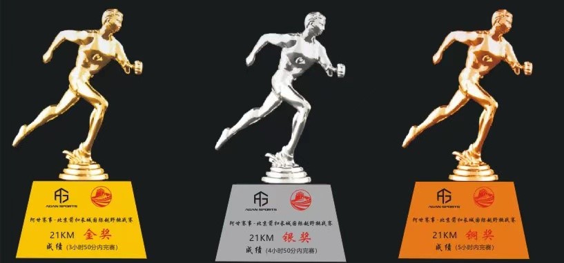 金人,銀人,銅人,鐵人!比賽獎不停,豪禮敬英雄!箭扣比賽挑戰(zhàn)性極高,探索魅力十足,阿甘賽事組委會為激勵更多選手完賽,箭扣長城越野賽為優(yōu)秀完賽選手頒發(fā)箭扣金人獎杯,銀人獎杯,銅人獎杯,21公里獲得獎杯者不能同時擁有獎牌,普通選手獎勵箭扣完賽獎牌!