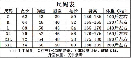 11、衣服尺碼對照表: