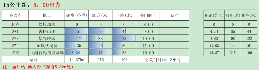 當(dāng)天:10.23上午7:30 組別15公里、30公里集合,8:00出發(fā)