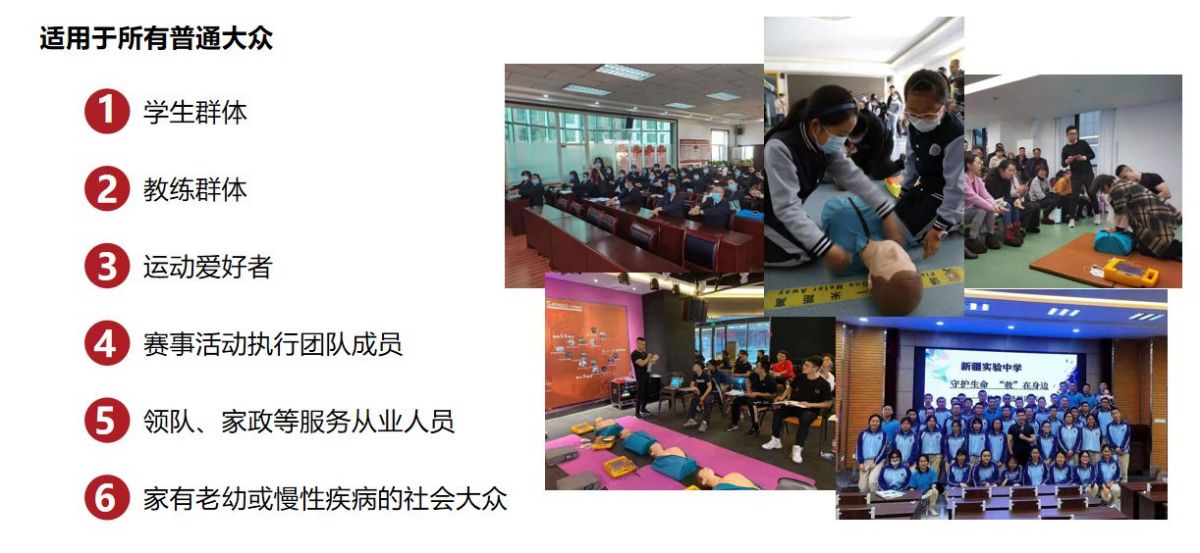 AHA的HS(Heartsaver)社會(huì)大眾急救培訓(xùn),全中文授課,全天約7小時(shí)的課程中學(xué)員將掌握常見(jiàn)急癥的判斷及處理方式,學(xué)會(huì)高效的CPR操作及AED的使用,適用于所有年齡段的普通大眾。