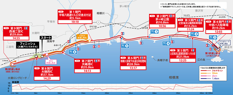 無(wú)論你是追求紀(jì)錄的精英跑者,還是旨在舒適安全地完成比賽的業(yè)余跑者,組委會(huì)要求大家都自帶水杯或者水瓶,沿途補(bǔ)給站為大家提供灌水處。賽道全程沿海,你將奔跑在湘南海岸的134號(hào)沿海公路,享受無(wú)敵海景風(fēng)光,清新的日式小鎮(zhèn),在江之島折返后如果天氣晴朗,還能眺望富士山。如此迷人的景色,絕對(duì)是跑者一路上最佳的享受,讓人心情無(wú)比舒暢。賽道幾乎沒(méi)高低起伏,也非常適合跑者來(lái)破 PB。