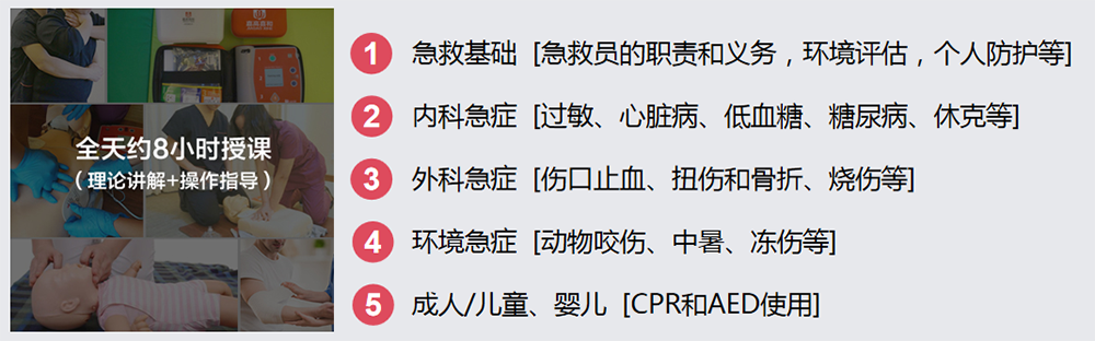 AHA的HS(Heartsaver)社會大眾急救培訓,全中文授課,全天約7小時的課程中學員將掌握常見急癥的判斷及處理方式,學會高效的CPR操作及AED的使用,適用于所有年齡段的普通大眾。